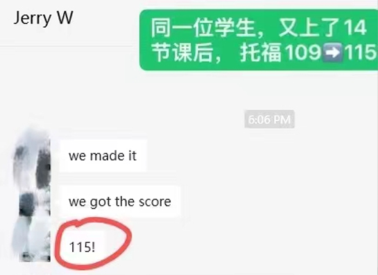 在和Alain老师上完总计32节托福听说读写一对一课后,托福从99分提高到了惊人的115分!